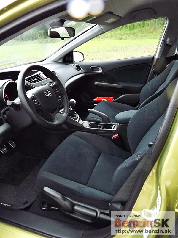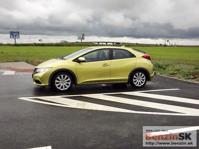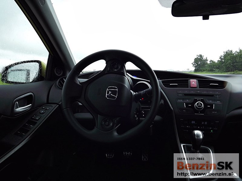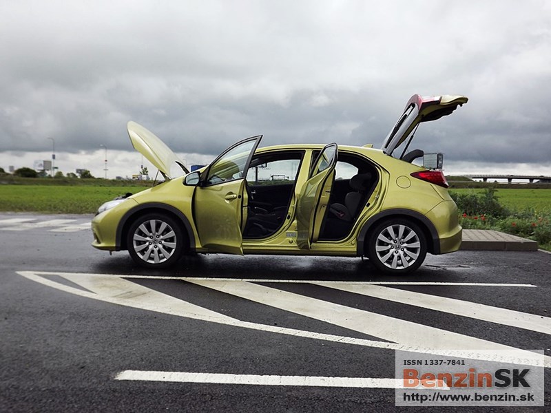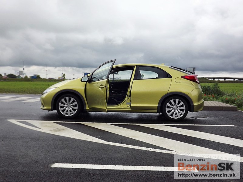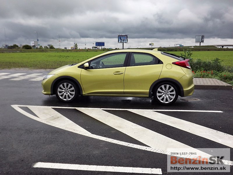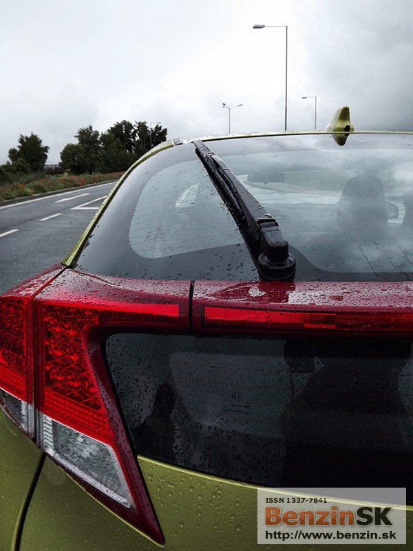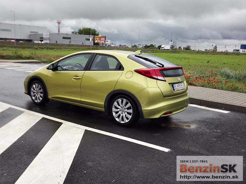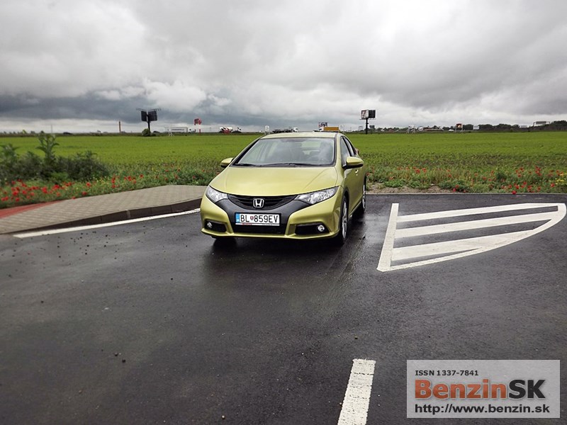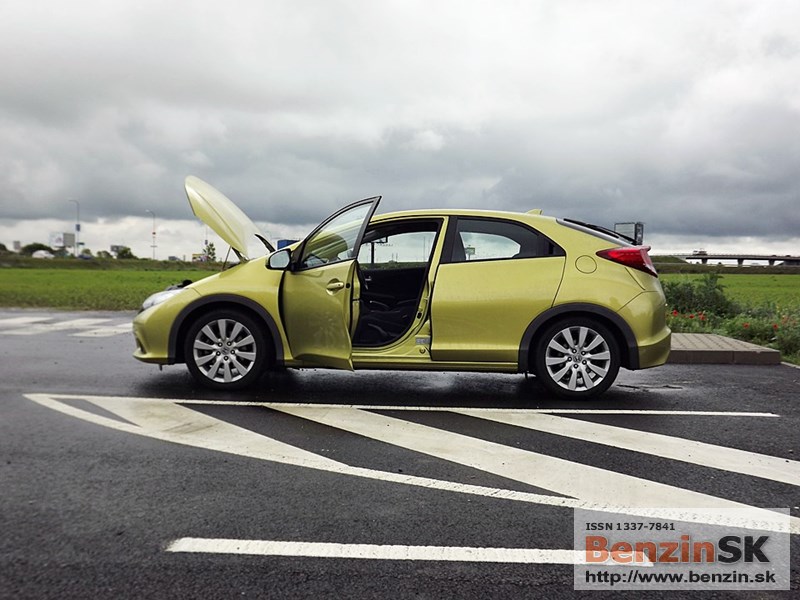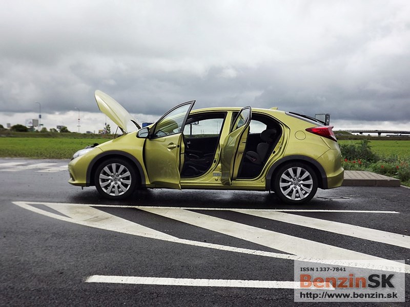 Zadný stierač je nezvyčajne zaparkovaný v polohe nahor, a nie rovnobežne s brzdovým svetlom. Civic má vo výbave parkovaciu kameru, ktorá bola výborným parkovacím pomocníkom. No pri cúvaní v daždi je kamera zanesená kvapkami a poskytuje zlý výhľad. Vozidlo je pomerne nízke, ale necítiť to pri nastupovaní a vystupovaní.