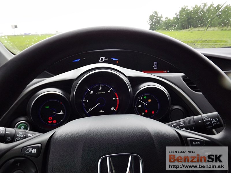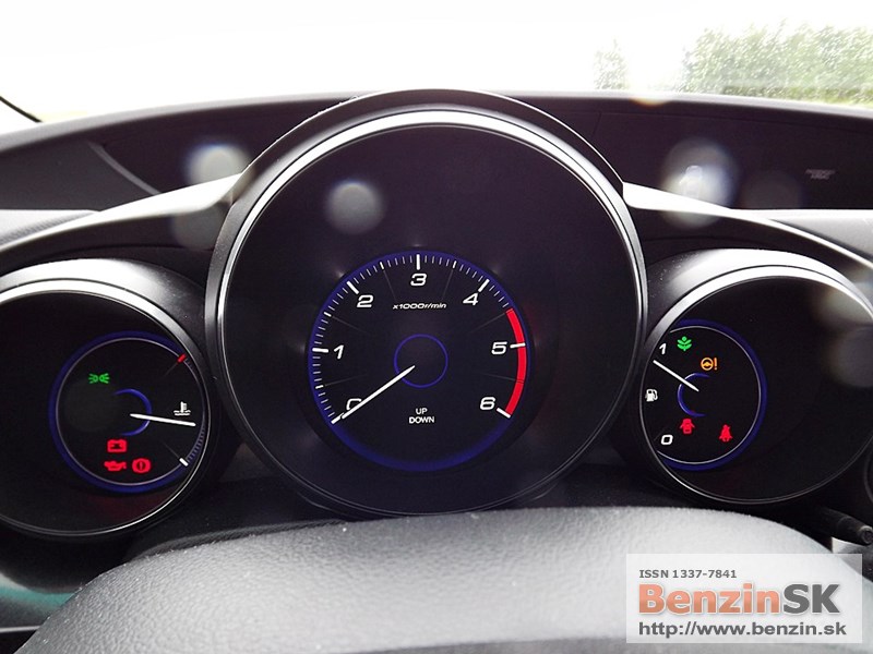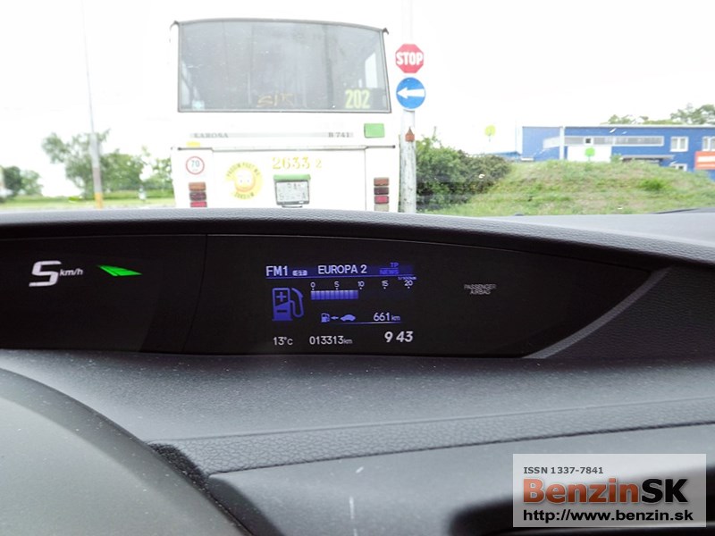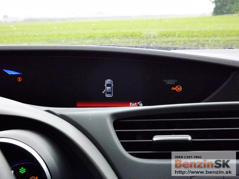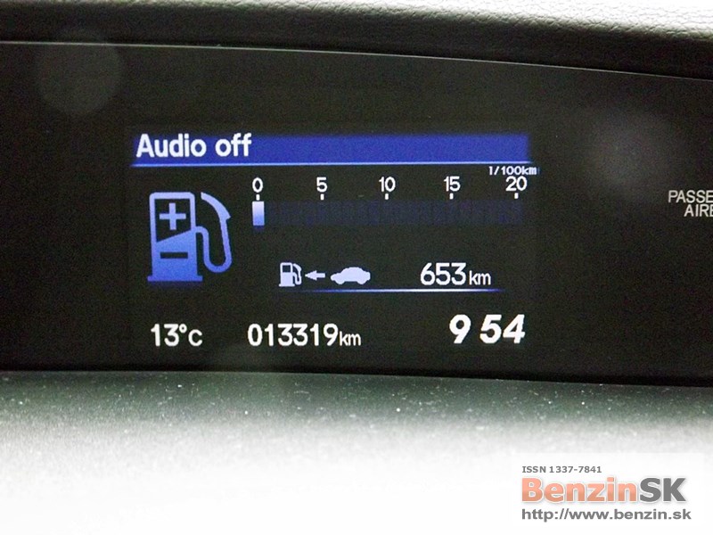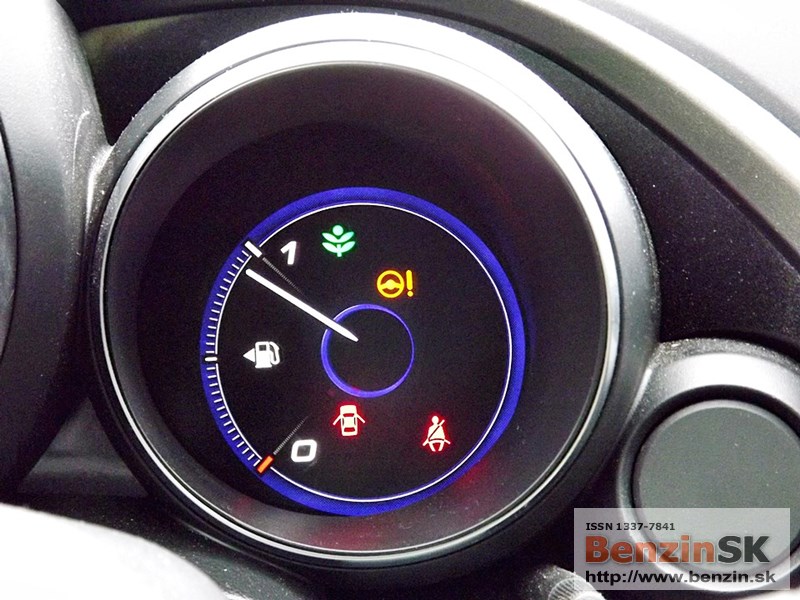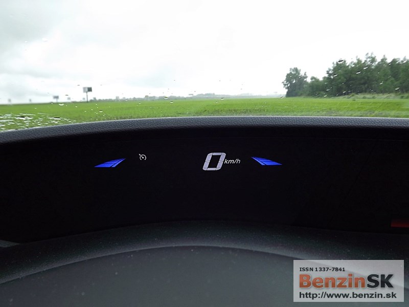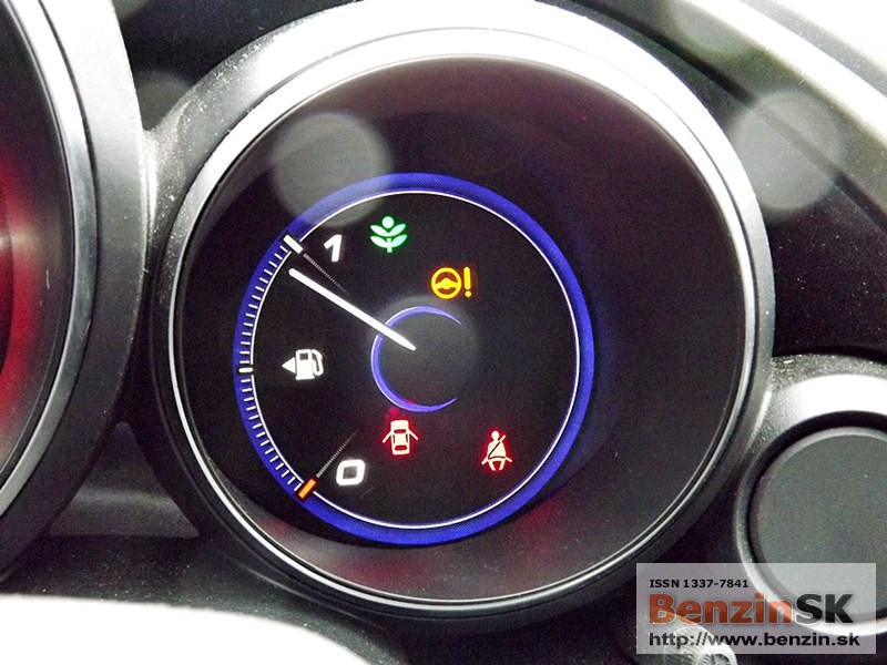 Futuristický displej farebne zobrazuje eco riadenie, od modrej, tyrkysovej po zelenú. Škoda, že pri nápovede preradenia, či podradiť alebo zaradiť vyšší rýchlostný stupeň, sú veľmi podobné. Výrazné farebné odlíšenie by bolo vhodnejšie - smerom nahor iná farba ako nadol.