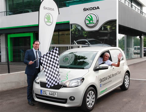 Úsporný automobil ŠKODA Citigo CNG sa pokúša o rekord - viac ako 2 700 kilometrov naprieč Európou. Majster sveta v úspornej jazde, Gerhard Plattner, vyrazil v nedeľu s obľúbeným modelom ŠKODA z talianskej Vicenzy na jednotýždňovú jazdu zo severného Talianska až do Škandinávie. Jeho cieľom je dôjsť do švédskeho hlavného mesta Štokholmuvozidlom ŠKODA Citigo na plynový pohon as rozpočtom na tankovanie necelých 100 eur.