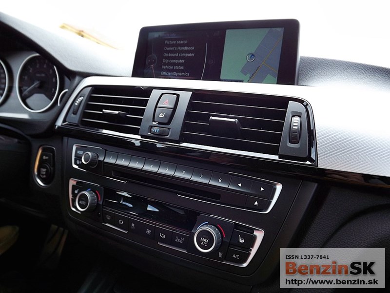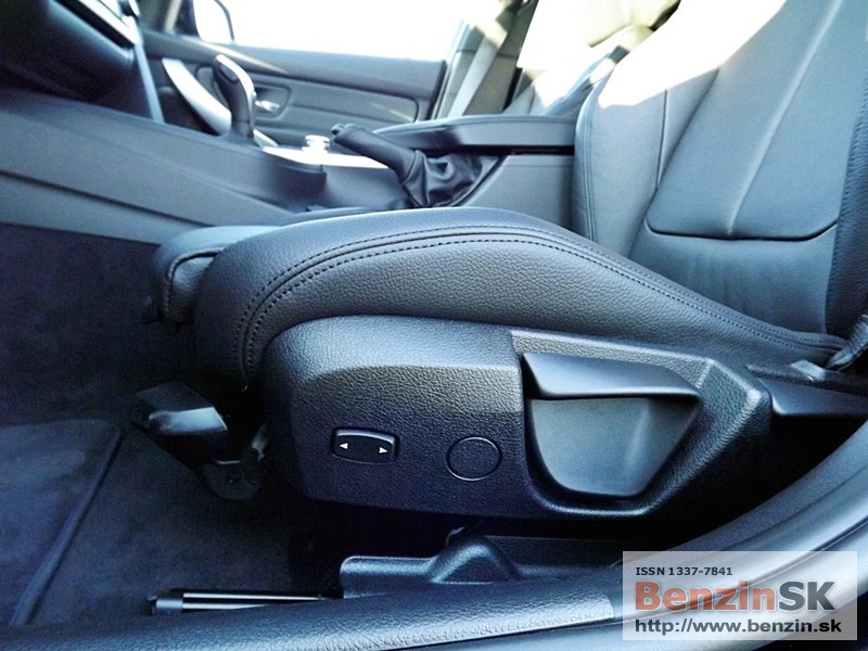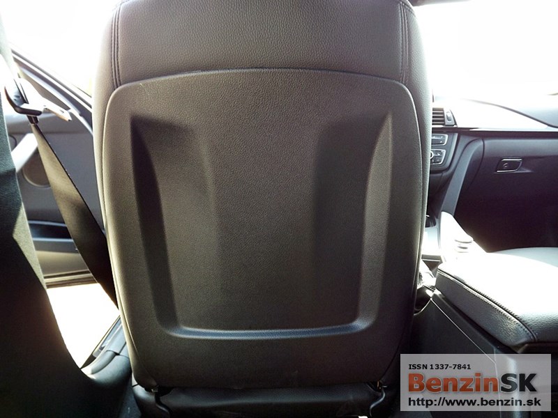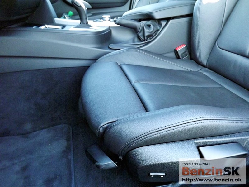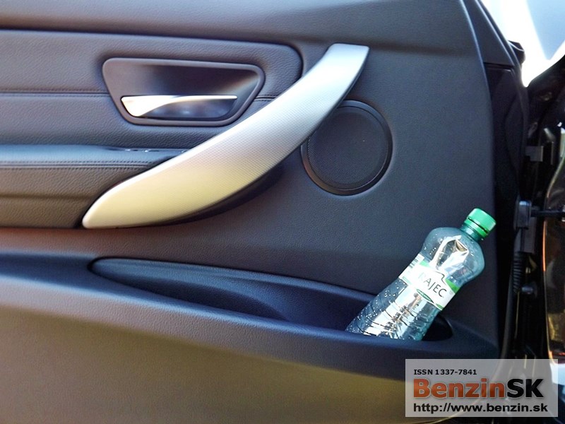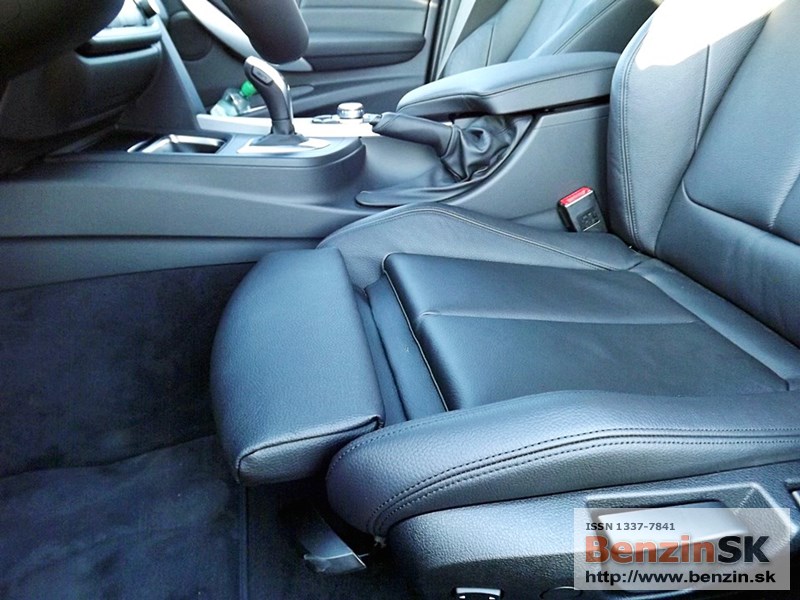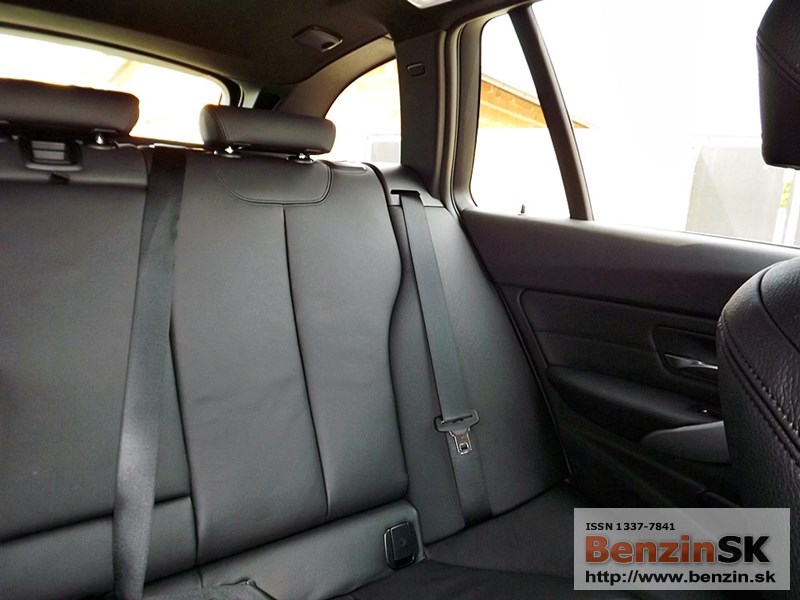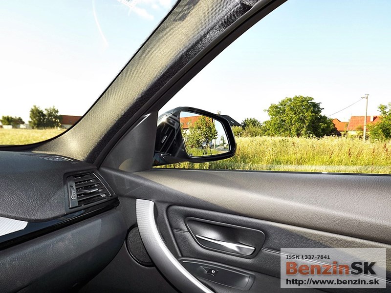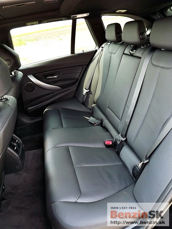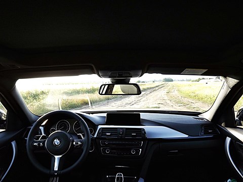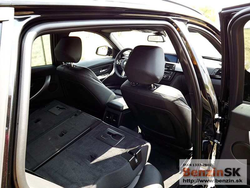 V interiéri má BMW radu 3 M Sport kožený volant s multifunkčným ovládaním, športové sedadlá, kožené čalúnenia. Logo M zdobí aj prahové lišty a odkladaciu plochu pre nohu pri pedáloch. Na volante vľavo je ovládač tempomatu, napravo ovládanie rádia a handsfree.