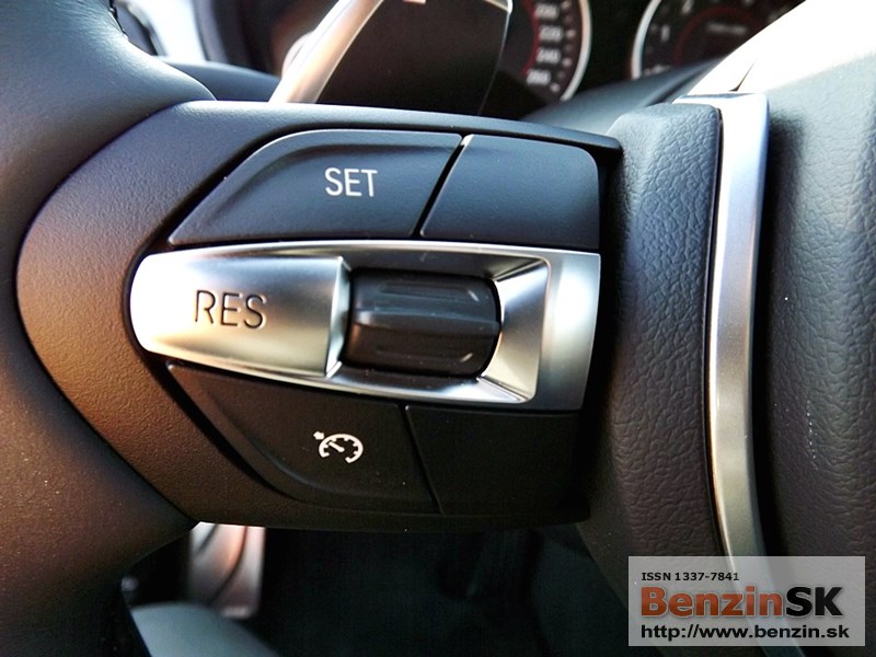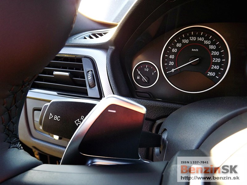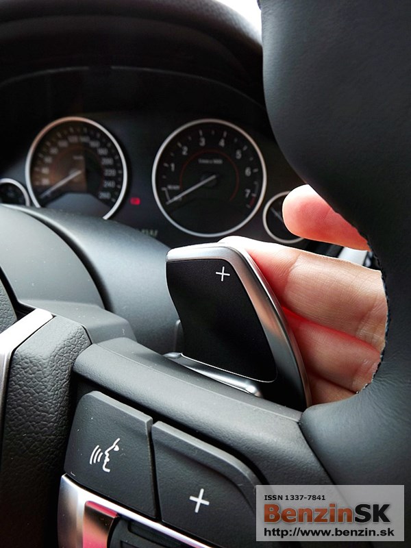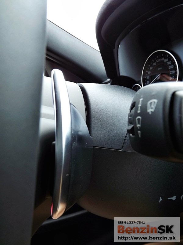 Pod volantom vľavo: blinkre, napravo stierač. Na volante sú „motýliky/uši“ na manuálne preraďovanie – skúsili sme, ale väčší komfort je, keď si prevodovka preraďuje sama.