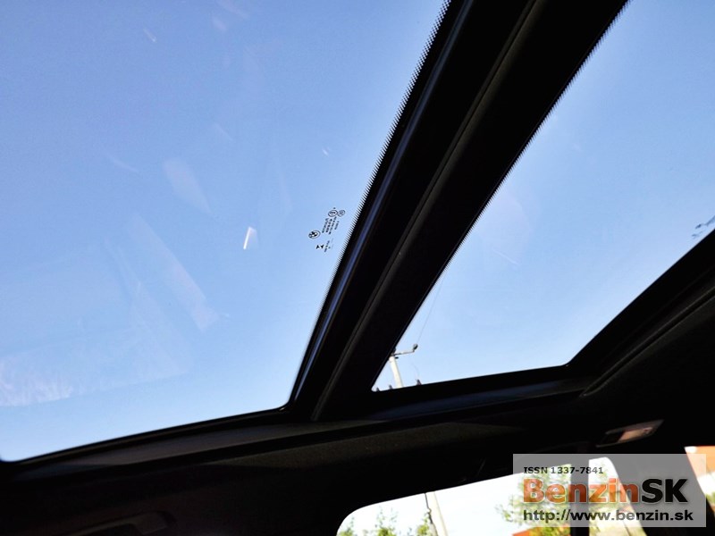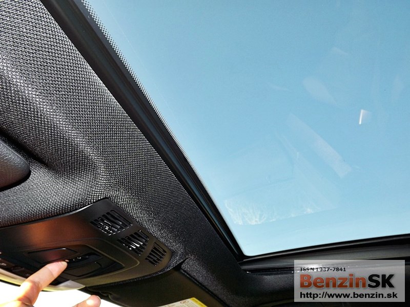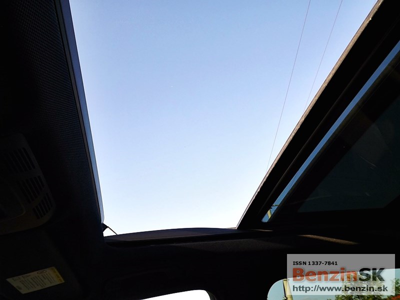 Automatická dvojzónová klimatizácia pracuje výborne, aj v tých najväčších horúčavách perfektne vychladila celé auto. Automobil má presklenú panoramatickú strechu so šíberom a odťahovacou clonou, takže aj zadní cestujúci môžu obdivovať krásu oblohy.