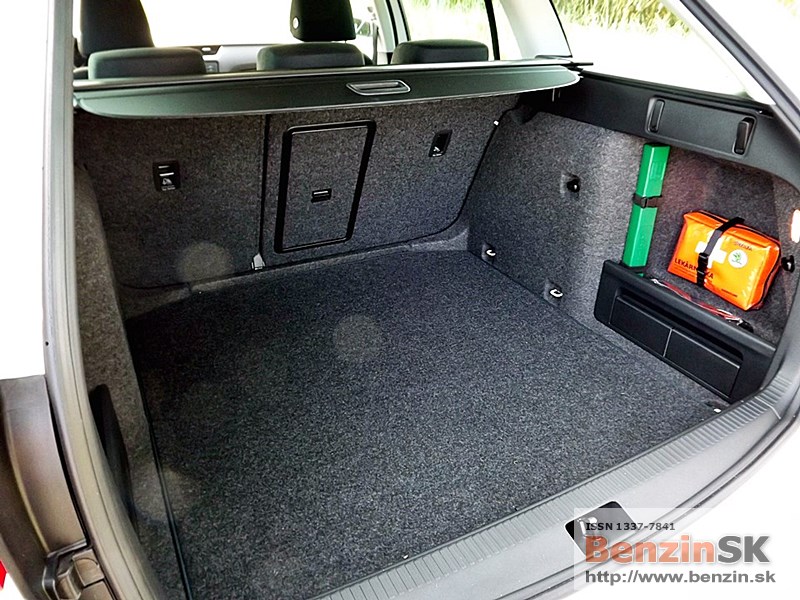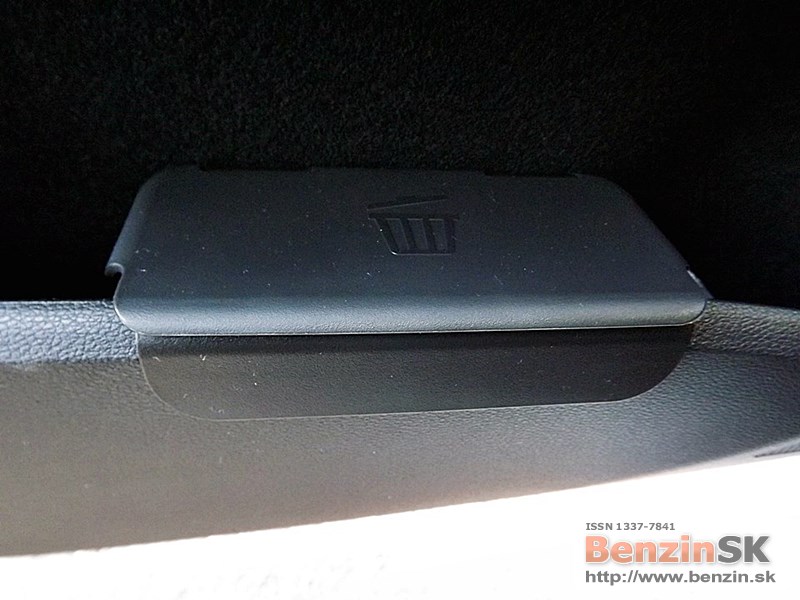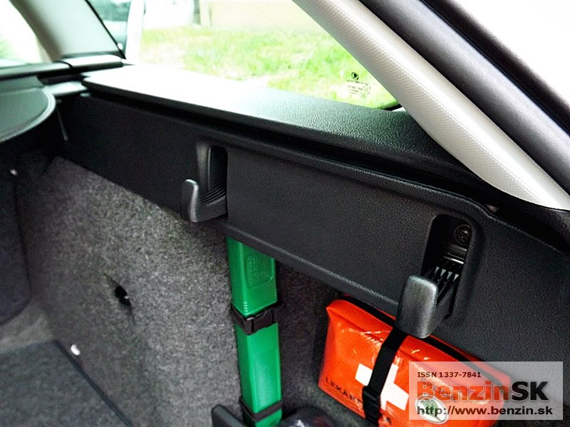 obojstranný koberec. Ak veziete čisté veci, môžete ho používať tkaninou smerom nahor. Ak je to potrebné, koberec otočíte na druhú stranu, gumenú a umývateľnú. Chválime aj tzv. cargo elementy, ktoré dokážu zabrániť neželanému pohybu batožiny počas jazdy. Jedná sa o dvojicu plastových dielov so suchým zipsom, ktoré sú uložené v stenách priehradok za zadnými podbehmi. Už samozrejmou výbavou je aj dvojitý sklopný háčik na zavesenie tašiek.