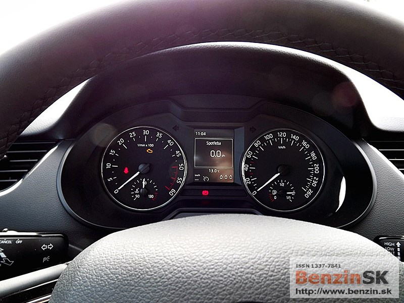 Na multifunkčnom koženom volante s chrómovými detailami je ovládanie rádia, palubného počítača a bluetooth. Predná palubovka je pekná, rovná v jednej línii. Prístroje sú prehľadné, dobre čitateľné a vďaka farebnému displeju pôsobia veľmi moderne. Palubný počítač okrem bežných informácií informuje napríklad aj o spotrebe paliva na prevádzku komfortných funkcií ako je klimatizácia, ohrev sedadiel,... Konečne má displej pred volantom vyššie rozlíšenie.