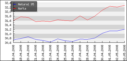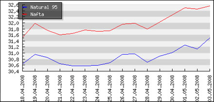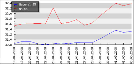 | Priemerné ceny pohonných hmôt v Českej republike k 5.5.2008 |