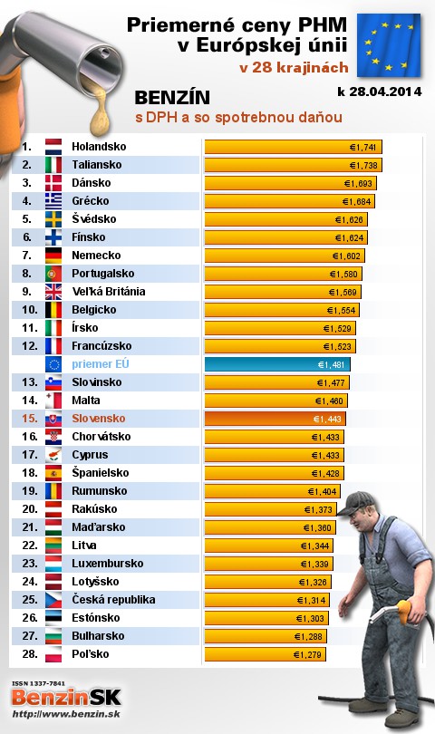 mali v Holandsku, kde motoristi v priemere zaplatili 1,741 EUR za 1L.