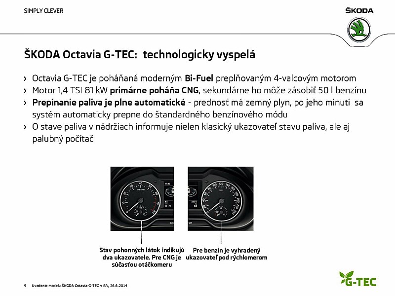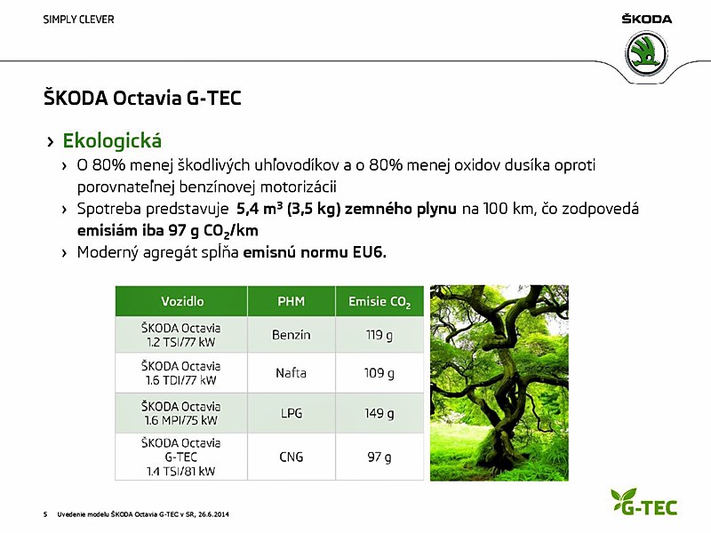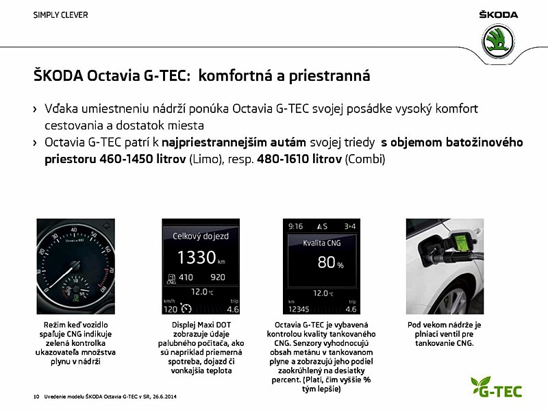 Svetový bestseller, ŠKODA Octavia tretej generácie, je od dnešného dňa k dispozícii s pohonom na stlačený zemný plyn aj pre slovenských zákazníkov. Nová ŠKODA Octavia G-TEC prináša ekologickú, úspornú a hlavne cenovo dostupnú mobilitu.