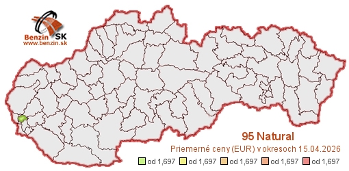 Dna 15.04.2026 sme priemerné ceny paliva 95 Natural za jednotlivé okresy vypočítali z údajov našej denne aktualizovanej databázy pre toto palivo od 1čacej staniece z 1 okresu Slovenska (celkovo z počtu okresov 79, čo je 1%).